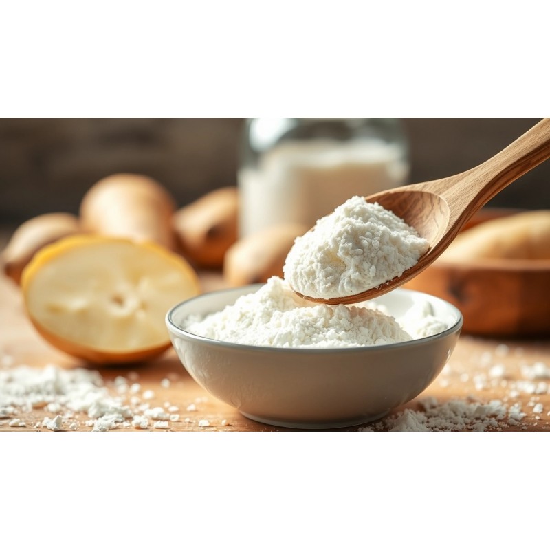 El almidón de papa, también llamado fécula de papa o chuño, es un polvo blanco extraído de las papas que funciona como espesante, estabilizante y aglutinante en alimentos (sopas, salsas, productos horneados), además de ser una fuente de energía y una alternativa sin gluten. Se obtiene triturando papas, lavando y secando el sedimento que se deposita, y se usa disuelto en agua templada para mejorar texturas y viscosidad.