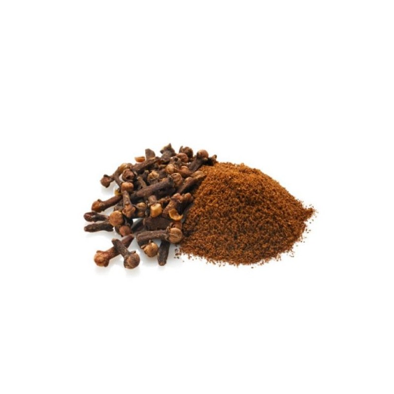 El clavo de olor molido es una especia intensa y aromática, derivada de botones florales secos, usada para saborizar postres (pasteles, galletas), carnes (cerdo asado, jamón) y bebidas, gracias a su sabor dulce, picante y amargo, con propiedades antimicrobianas, analgésicas y digestivas, pero debe usarse con moderación por su potencia.